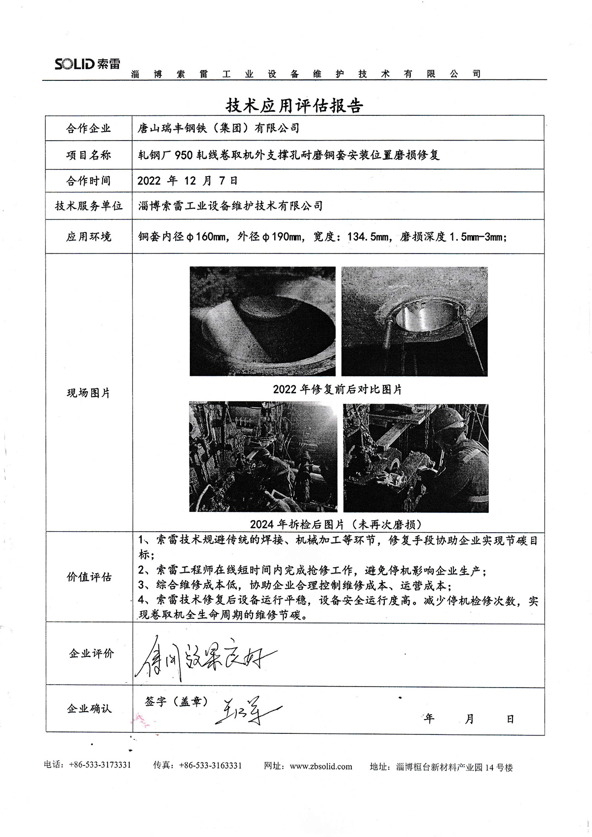 淄博索雷工業設備維護技術有限公司(簡稱:索雷工業)始創于2014年,是領先的碳納米聚合物材料開創者及應用服務商。公司業務及經營網絡遍及全國31個省、自治區和直轄市,目前,主營業務隨“一帶一路”已拓展至西亞、東南亞、東亞沿線近十余個國家,已與近3000家企業實現合作和提供過上萬次的在線快修技術支持與可靠性高價值服務。